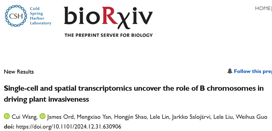 英文標(biāo)題:Single-cell and spatial transcriptomics uncover the role of B chromosomes in driving plant invasiveness