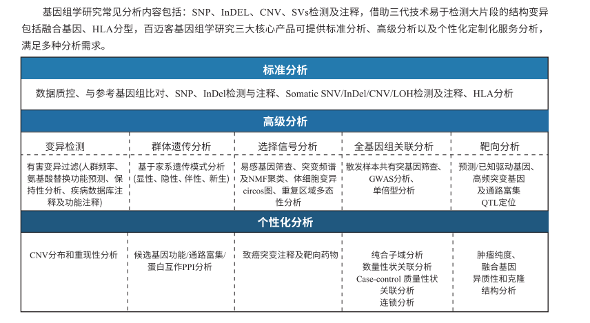 百邁客借助BGI、Nova、ONT、PB等測序平臺,研發專業、完善的二代、三代人重測序技術,并基于自動化建庫系統、百邁客云平臺,從而打造真正意義上多層次、多選擇的重測序檢測平臺,提供全基因重測序全流程服務。