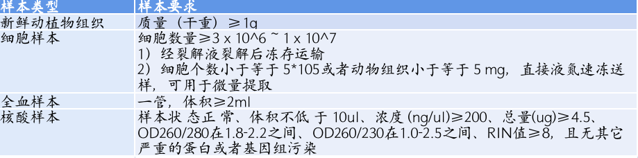 答:sRNA測序產品可以對動植物、全血、細胞等組織或者核酸樣本進行測序,分析要求需要有對應物種的參考基因組,具體的送樣指導,請參考如下內容: