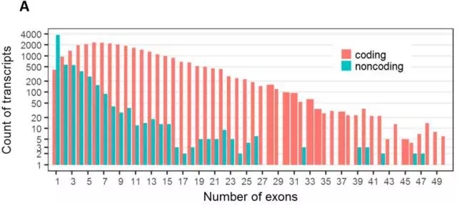 對非編碼轉錄本基因進行分類,1,794個為基因間區、3,558個基因定位于可編碼轉錄本。
