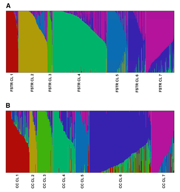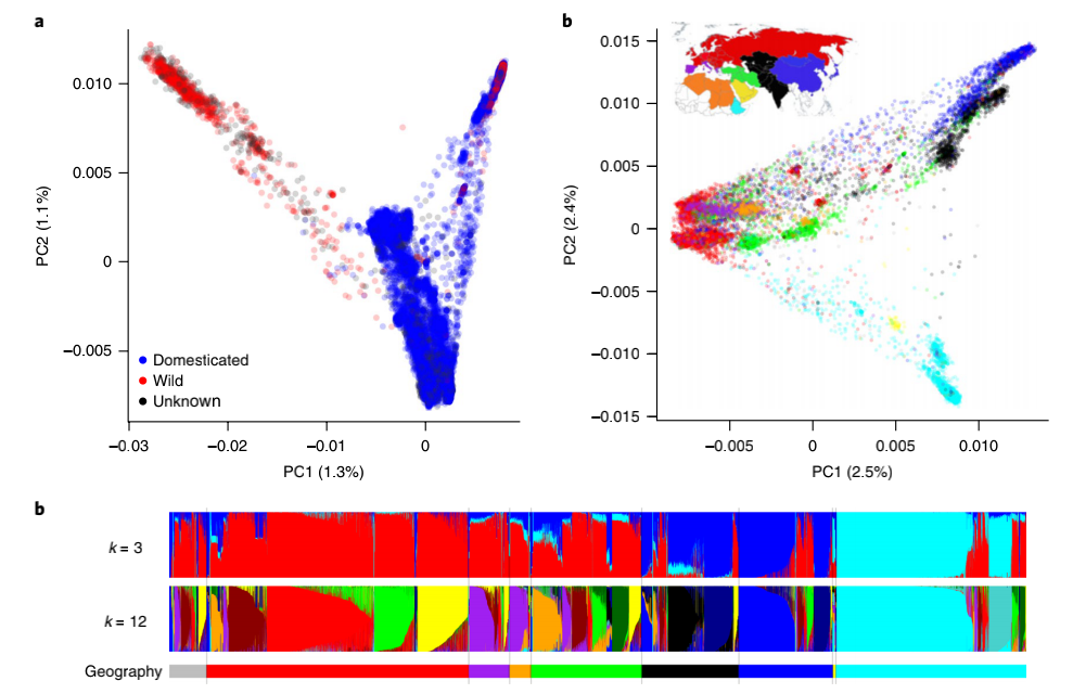 基因庫收集和保存大量植物和詳細的護照信息,目的是保護遺傳多樣性以進行保護和育種。此類集合的遺傳表征有可能闡明重要作物的遺傳歷史,使用標記-性狀關聯來鑒定感興趣性狀的位點,尋找正在進行選擇的位點,并通過識別分類錯配和重復為基因庫管理作出貢獻。本研究通過GBS測序對來自全球基因庫的10,038個辣椒 (Capsicum spp.) 種質進行基因分型,并調查了這種標志性主食的近期歷史。基于SNP數據計算了identity-by-state (IBS) 比例,在基因庫內和基因庫之間檢測到多達 1,618 個重復種質。進一步深入分析了常見食用辣椒的遺傳多樣性以調查其歷史,發現在全球廣泛地區收集的辣椒種類有很大的重疊。GWAS分析和選擇清除分析發現辣椒性狀,如刺激性,這些性狀在全球分布不均勻,表明人類偏好對馴化辣椒的遺傳結構產生了主要影響。