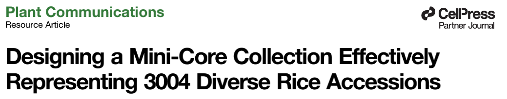 [3] Kumar A, Kumar S, Singh KBM, et al. Designing a Mini-Core Collection Effectively Representing 3004 Diverse Rice Accessions. Plant Commun. 2020;1(5):100049.