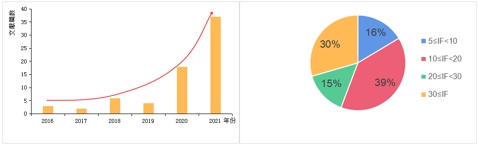 2016年-2021年空間轉錄組文章發表趨勢和影響因子分布