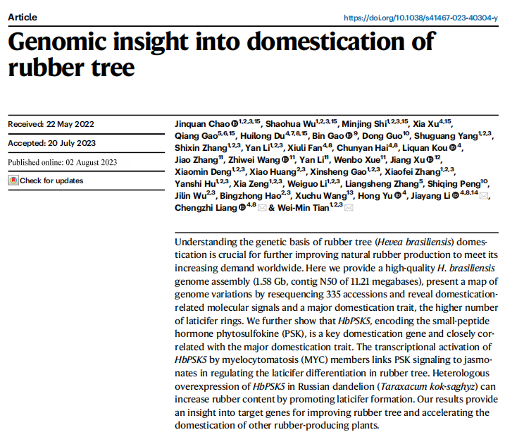 橡膠樹基因組解析助力馴化研究