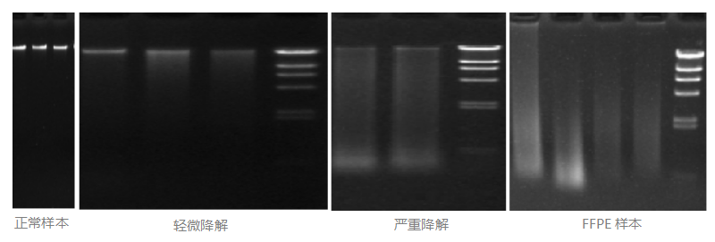 FFPE樣本為臨床上非常重要且珍貴的樣本來源,建議FFPE樣本由百邁客進行提取,我們采用可以對FFPE樣本中由于化學(xué)修飾導(dǎo)致的C>T變異校正的提取試劑盒;同時建庫時采用可以提高斷裂片段與接頭序列連接效率的微量建庫試劑盒,保證微量降解片段的建庫成功率。百邁客擁有重度、中度、輕度降解、cfDNA及正常DNA建庫經(jīng)驗,且全血樣本、全血分離白細胞樣本、新鮮凍存組織、FFPE樣本、血漿樣本以及羊水細胞等各種類型樣本的提取經(jīng)驗豐富。